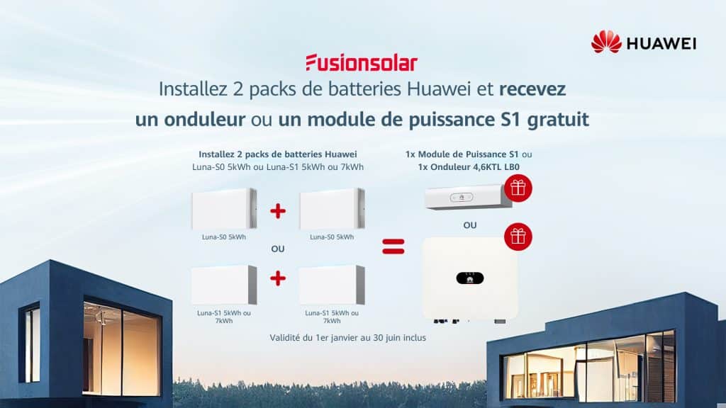 Achetez et installez 2 batteries Huawei dès maintenant et repartez avec un onduleur ou un module S1 Power gratuit !