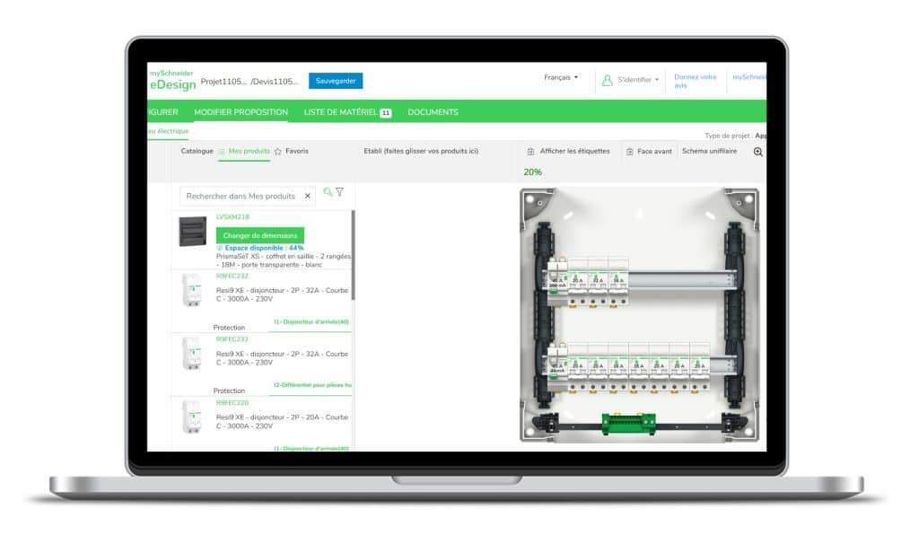 De tool beschikt over een intuïtieve interface waardoor u uw configuratie van uw elektrische kast in slechts enkele stappen kan voltooien.
